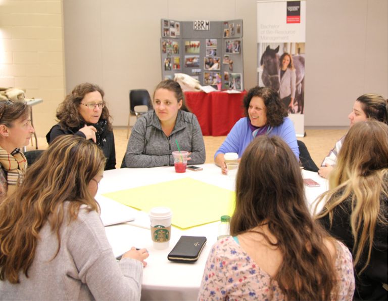 Main photo: L-R: Lorraine MacDonald, Christilot Hanson-Boylen, and Cara Whitham at the 2017 Symposium. Photo: Equestrian.ca